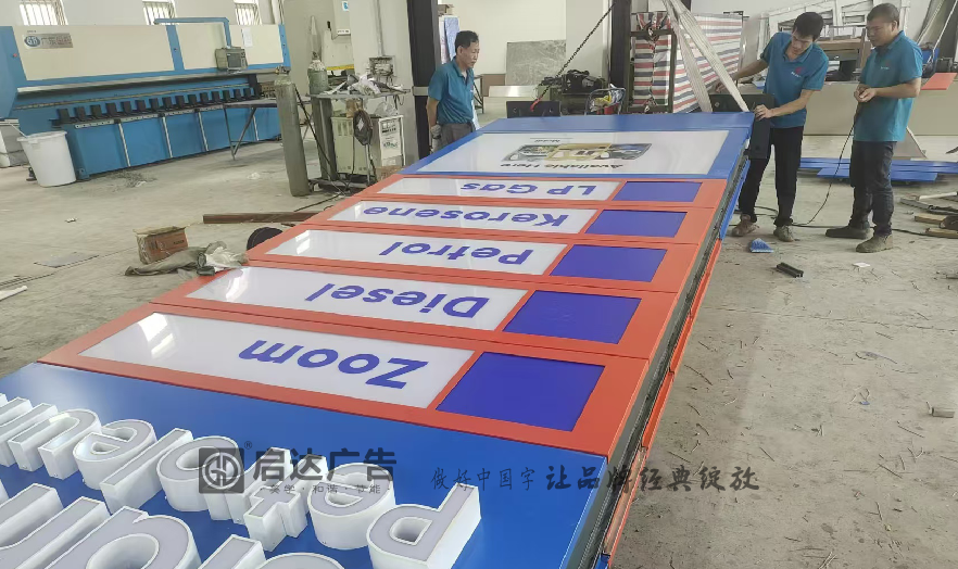 該加油站位于東南亞某國主干道沿線,是跨國物流車輛與本地私家車的重要補給站點。原有指示系統存在多重問題:多語言標識混亂導致外籍司機誤解;加油區、便利店、衛生間分區指引模糊,高峰時段人流車流交叉擁堵;熱帶高溫多雨環境下,標識牌出現褪色、電路故障,影響運營安全。為提升國際司機服務體驗,啟動指示牌系統全面深化升級。?